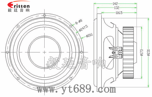 采用泡邊紙盆,50芯銅線音圈,紙盆是復合松壓盆,設計新穎,阻尼效果好,音質清晰;