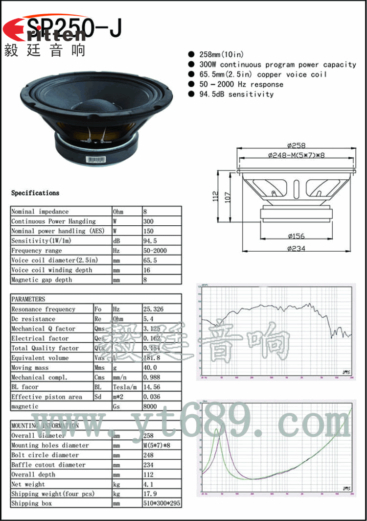此款10寸150w重低音喇叭,最大承載功率300W,音色飽滿、強勁有力,優異用于專業舞臺音箱上,毅廷喇叭廠家受到廣大客戶的信賴。