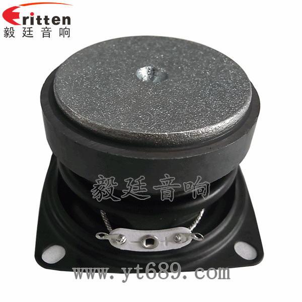 53mm方形鐵盆架外磁全頻喇叭,采用了高性能、高密度鐵氧體,磁性強,靈敏度高。