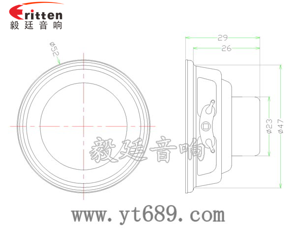 52mm圓形鐵盆架內磁全頻喇叭,采用的是黑色精致烤漆的鐵盆架,防銹又美觀,超大的散熱孔,超強的散熱功能。