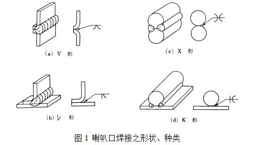 喇叭口焊接(Flare Welding)是使用于圓條與圓條,圓條與板,或輕量型鋼之接合。喇叭口焊接之形狀種類示于圖1。在喇叭口焊接,因根部之熔透困難,且發生缺陷之情形較多,需要注意。