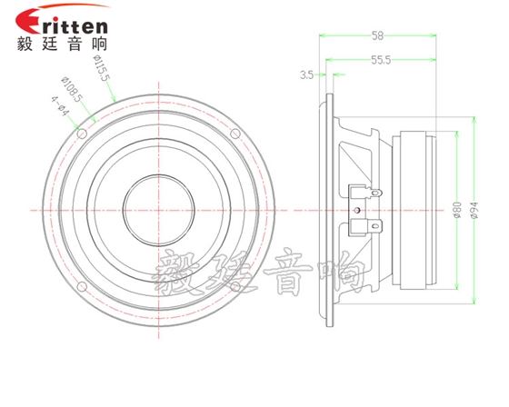 4寸4Ω10w中低音喇叭
