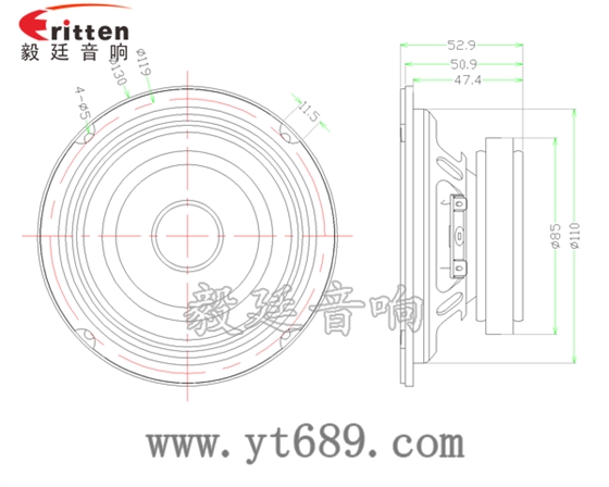 4寸4Ω10w中低音喇叭