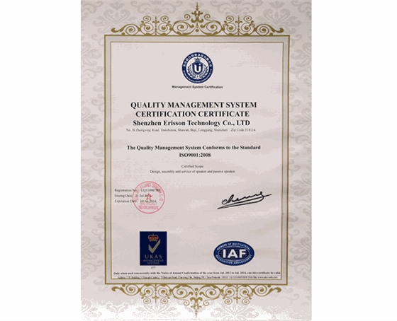 首頁幫助中心喇叭廠ISO9001認證