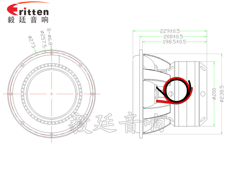 毅廷音響8''中低音舞臺(tái)音箱喇叭廠家正反面
