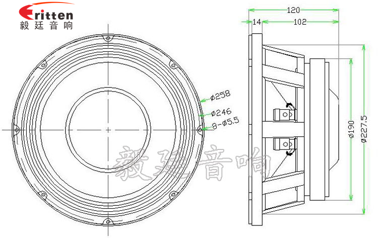 此款優異用于10寸中低音汽車音響喇叭,舞臺音箱單元上,聽感厚實、音色飽滿,選喇叭首選東莞毅廷喇叭工程師百分之五十時間研發新工藝新技術,百分之五十為客戶提供技術支持。