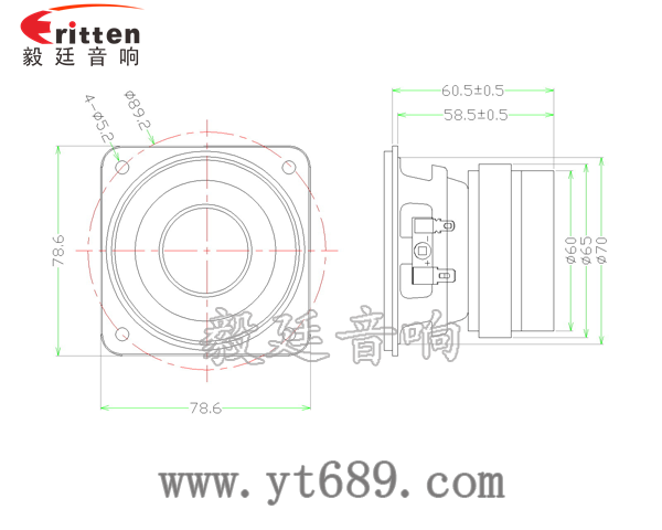 毅廷音響2.5寸5瓦全頻喇叭正反面