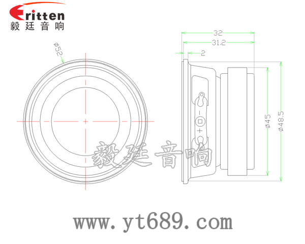 52mm圓型鐵盆架外磁全頻喇叭,采用的是黑色精致烤漆的鐵盆架,防銹又美觀,超大的散熱孔,超強的散熱功能;