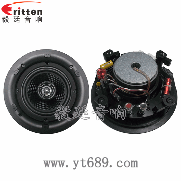 此款5.25寸30W全頻同軸天花喇叭,頻寬為77Hz~20KHz,低頻厚實,是由毅廷音響工程師精心研發的一款超完美的天花喇叭,多數用于辦公室,酒店等高檔場所。