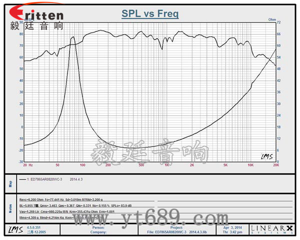 ★頻率范圍(freq response):77Hz~4KHz
