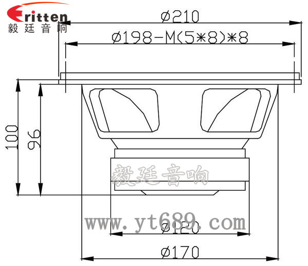 東莞市毅廷音響科技有限公司嚴格貫徹,此款8寸舞臺低音喇叭,額定功率為75W,最大峰值150W,音域76Hz~7KHz,超重低音炮,下潛力深。