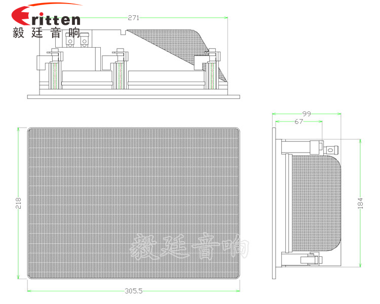 6.5寸方型外磁帶網罩全頻喇叭,采用的是精美的銅材質按壓式接線端子,配紅黑正負極,接線方便;