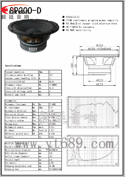 音圈阻抗(voice coil impedance):8Ω