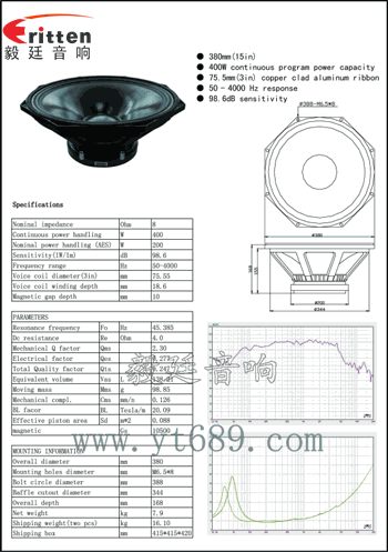 15寸異型鋁盆架外磁重低音喇叭,采用的是涂覆黑色防氧化漆,設(shè)計精簡牢固穩(wěn)重實用;