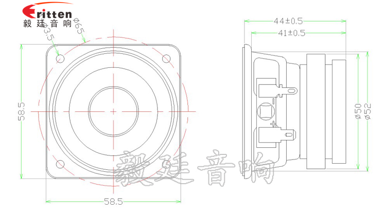 58mm方形鐵盆架超重低音喇叭,采用的是外磁雙磁,大大增強靈敏度,使聲音更加完美,動聽;